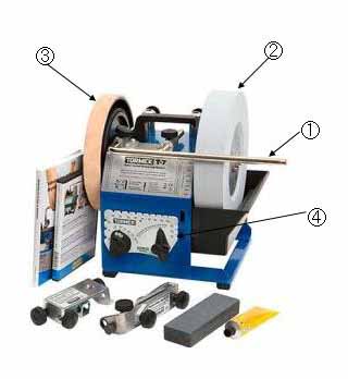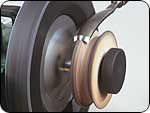 旋回する砥石は、酸化アルミナで、直径の大きな程、迅速に研げ、砥石の回転数が低いほど摩擦熱の発生は小さくなります。